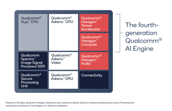 특히 신규 공개된 헥사곤 프로세서에는 헥사곤 벡터 확장(Hexagon Vector eXtensions, HVX) 및 전용 헥사곤 텐서(Tensor) 가속기 (HTA)가 탑재돼 자연어 처리·사물 분류 등 엣지(edge) 기반 머신러닝이 적용되는 기능 실행 시 향상된 전력 효율과 더불어 탁월한 AI 가속을 지원한다.