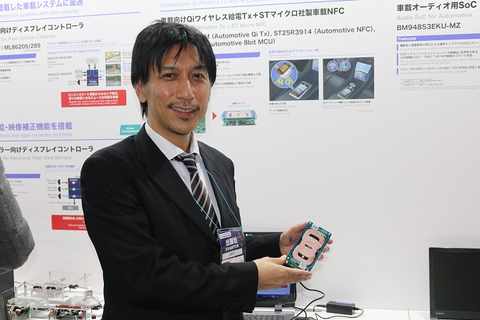 A. 우리는 최근 자동차용 무선충전 솔루션을 개발했다. 이 솔루션은 로옴이 개발중인 차량 탑재용 무선 전력 제어 IC인 'BD57121MUF-M'와 ST 마이크로일렉트로닉스의 NFC 리더기 IC 'ST25R3914', 제어용 8bit 마이크로 컨트롤러 'STM8A 시리즈'로 구성되어 있다.