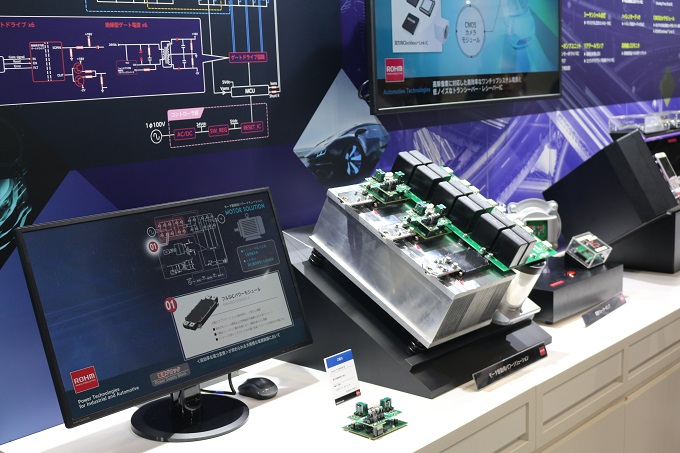 ▲로옴 부스에 전시된 자동차산업에서 중요한 역할을 담당하는 파워 디바이스 및 제품들