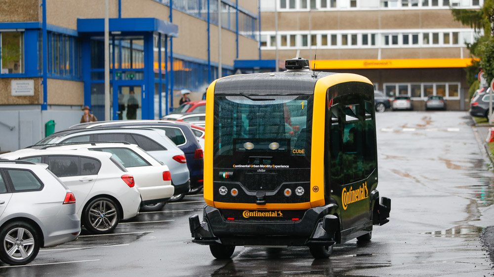 콘티넨탈은 자체 소형버스를 개발 플랫폼으로 이용해 2018년 무인주행 전기셔틀 ‘CUbE(Continental Urban Mobility Experience)’를 프랑크푸르트 응용과학대학(Frankfurt University of Applied Sciences) 캠퍼스 내에서 테스트를 진행했다. 해당 시스템은 당장은 완전 자동으로 운행되지는 않을 것으로 알려졌지만, 사용화가 머지않을 것으로 기대된다.