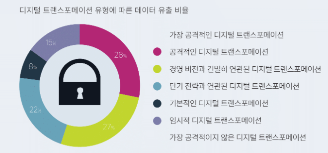 디지털 트랜스포메이션을 위해 클라우드 환경을 채택할 것인지를 묻는 설문에서 응답자 중 90%는 특정 유형의 클라우드 환경을 사용 중이거나 사용할 예정이며, 44%는 해당 환경의 복잡성이 적절한 데이터 보안 조치를 실행하는 데 방해 요소로 작용한다고 응답했다.