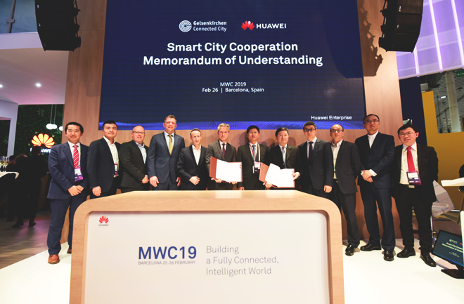 화웨이와 겔젠키르헨시가 스페인 바르셀로나에서 열린 모바일 월드 콩그레스(Mobile World Congress, MWC2019)에서 스마트 도시 협력에 대한 양해각서를 체결했다.