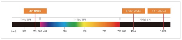 광의 파장이 짧은 UV NANO 레이저의 가장 큰 장점은 가공 자재의 열 손상을 감소화하여 기계적 가공성을 우수한 수준으로 끌어올릴 수 있다는 것이다. 해당 레이저의 경우 파장별 레이저 분포 항목에서 Green(532nm) 및 IR(1064nm) 레이저보다 약 1/2에서 1/3 수준으로 광의 파장이 짧기 때문에 동일 시간에 소재에 가해지는 열의 영향은 감소한다. 이는, 가공 시 자재의 열 손상을 통한 변형이 IR 및 Green 레이저보다 작다는 것을 의미한다.