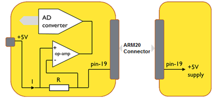 [그림 1]의 방법으로는 디버깅 프로브에 의해 전원이 공급돼야 하며 전류 소비량 샘플링 또한 보드 전체의 전류소비량만 측정 가능하다. 만일 보드 전체의 전류 소비량 측정 외 특정 파트에 대한 전류 소비량 측정이나 보드의 전원공급이 디버깅 프로브가 아닌 외부 전원을 사용하는 경우 I-scope라고 하는 별도의 장비를 사용해야 한다.