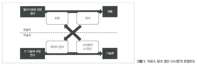 크로스 링크 생산 시스템은 설계․제작에서 트라이를 반복해 제품 합격에 이르는 과정을 금형․제품을 포함하는 ‘현물측’과 데이터․가공이론을 포함하는 ‘학술측’으로 나눠 생각, 상호 정보를 피드백시키면서 각각의 메리트를 활용해 업무를 추진하는 구조이다. 정보의 상호 간섭을 반복함으로써 제품․기술론의 레벨업을 도모하고, 항상적인 품질 향상이나 개발의 단납기화, 양산면의 안정 공급 실현을 목표로 한다.