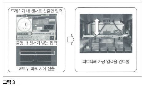 구체적으로는 압력센서나 광전센서를 금형 내부에 설치(그림 2), 네트워크를 통해 데이터를 수집․축적한다. 이 데이터를 해석 시뮬레이션에 이용해 분석․검토를 함으로써 해석 정도의 향상을 도모한다. 또한 해석에 의해 얻은 정보를 기초로, 에어 실린더나 로봇 실린더 등의 제어장치를 이용해 워크의 위치․압력 조정을 하고 제품에 피드백한다(그림 3).