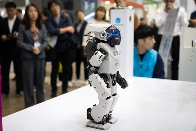 ▲ ST마이크로일렉트로닉스는 SEDEX 2018에서 휴머노이드 로봇을 선보였다.
