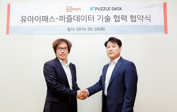 RPA(로봇 프로세스 자동화) 기업 유아이패스코리아가 지난 28일, 프로세스 마이닝을 이용한 데이터 사이언스 전문기업 퍼즐데이터와 국내 기업에 최적화된 RPA 개발을 위한 기술 협약을 체결했다.