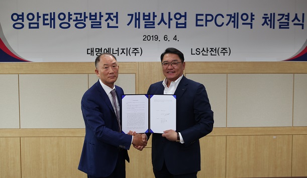 LS산전은 전남 영암군에 구축되는 총 설비용량 93MW급 ESS(에너지저장장치) 연계 태양광 발전 프로젝트 사업자에 선정, 4일 발주사인 대명에너지 본사에서 대명에너지 서기섭 회장과 LS산전 구자균 회장이 참석한 가운데 1,848억 원 규모의 EPC 사업 계약을 체결했다고 밝혔다.