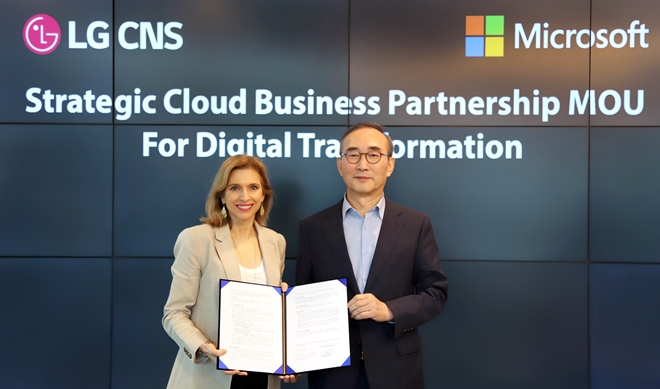LG CNS는 지난 14일 싱가포르에 위치한 MS 아시아태평양(APAC) 본부에서 MS와 차세대 업무환경 혁신 솔루션, 클라우드 기반 디지털 신기술 및 솔루션 개발 협력 등 디지털 트랜스포메이션 전방위 협력을 위한 전략적 파트너십(MOU)을 체결했다고 밝혔다.