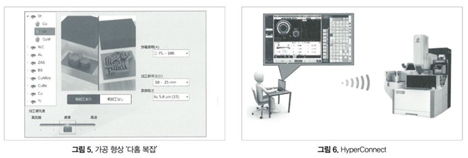 Hyper i는 형상마다 조건 등의 최적 조합을 자동 선택하기 때문에 이렇게 양호한 결과를 얻는 것이 가능하다. 그림 5에 기복이 심한 다홈 복잡 형상을 나타냈다. 이와 같은 형상은 설정을 잘못하면, 최악의 경우 이상 방전을 일으켜 워크를 크게 파손시켜 버릴 가능성이 있다.