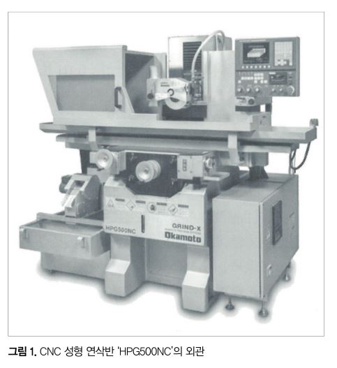 이번에 약 4,000대의 납입 실적을 가진 베스트셀러 PFG500의 진화판인, 범용기의 사용성과 CNC의 기능을 겸비한 CNC 성형 연삭반 ‘HPG500NC’(이하 HPG, 그림 1) 시리즈에 대해 효율․조작성․환경의 면에서 소개한다.