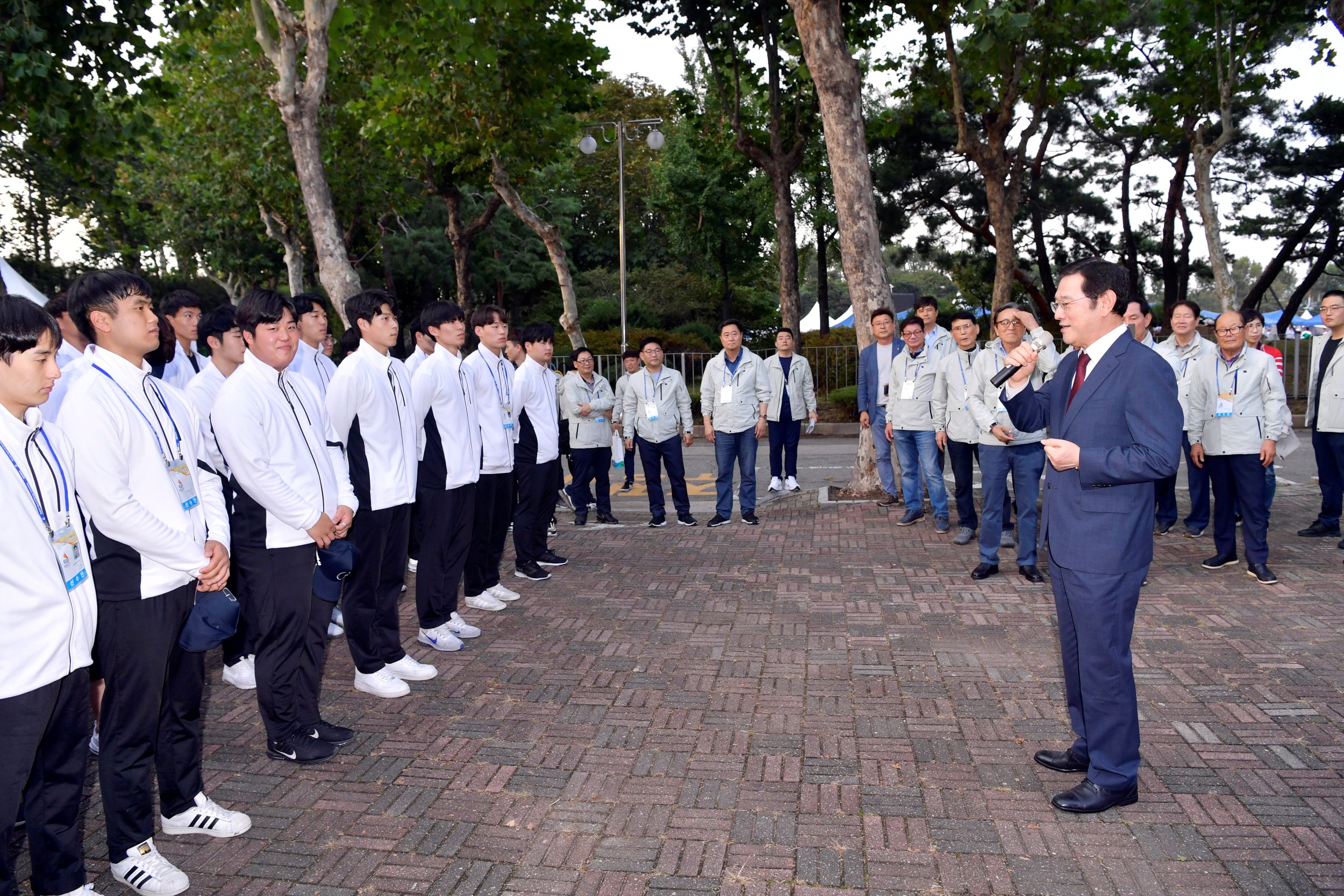 이용섭 광주광역시장은 지난 4일 오후 서울 잠실종합운동장을 찾아 ‘제100회 전국체육대회’에 광주대표로 출전하는 선수들을 격려했다.