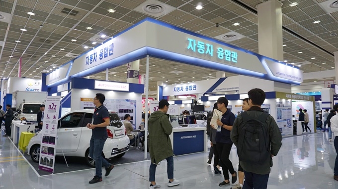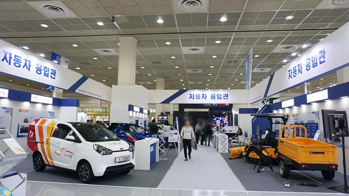 자동차융합관은 시장의 흐름을 읽는 중소기업들의 핵심기술과 제품을 경험할 수 있는 전시가 진행되고 있다.