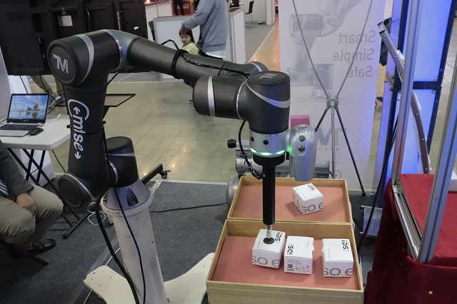 Techman Robot Inc.의 한국 공식 대리점인 엠티에스이가 ‘2019 로보월드’에 참가해 TM 로봇 시리즈를 선보였다.