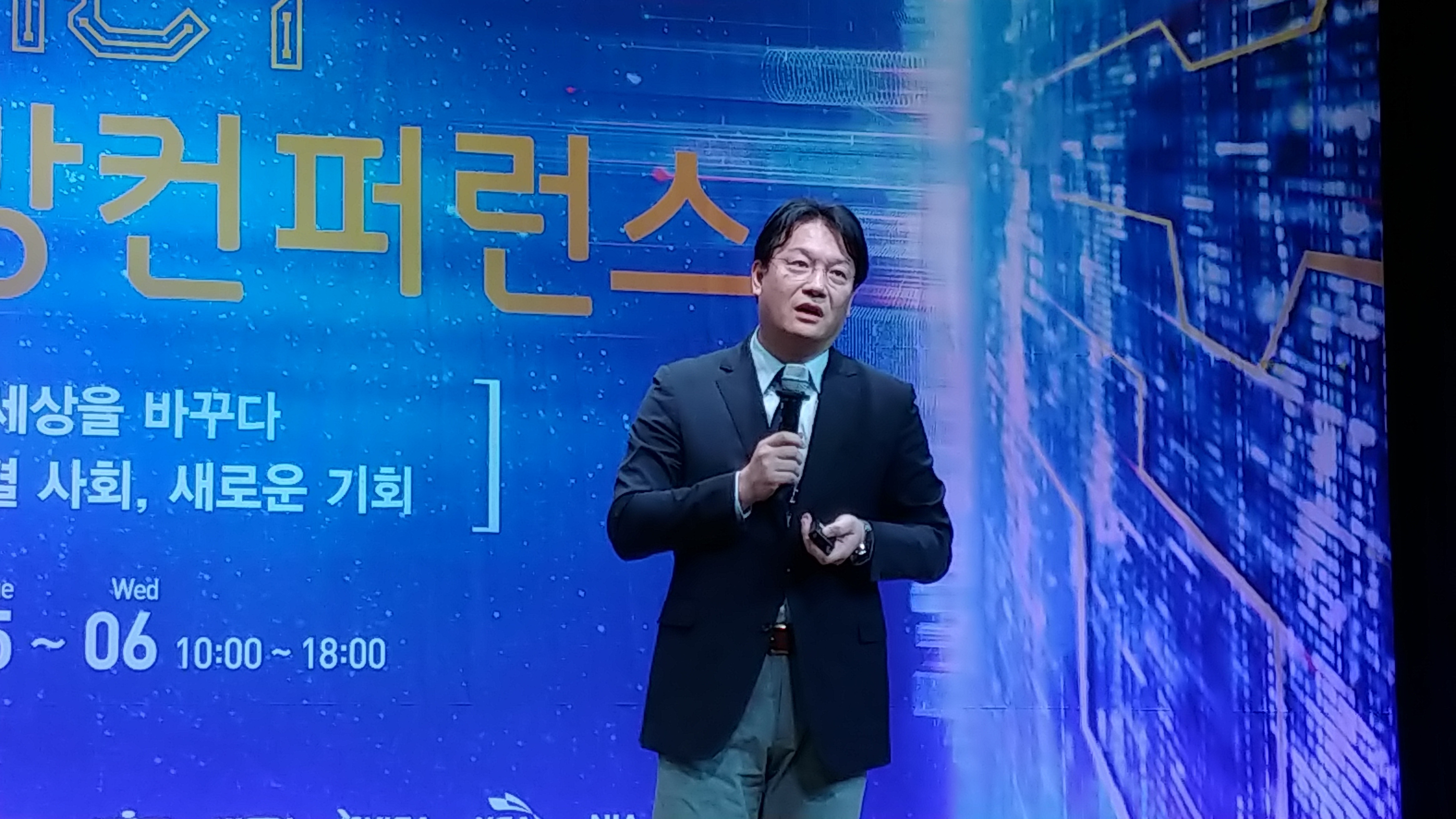 박상규 한국전자통신연구원(ETRI) 부원장 "변화와 혁신으로 탈바꿈하는 미래 : AI와 ICT의 발전 전망"에 대해 발표하며 “AI 발전의 원동력은 ICT 기술이 지렛대 역할을 해야 가능하다.”며 “어떤 기술도 하나만으로 완성되는 것이 아니라 여러 기술을 융복합해야 하기 때문에 동반 성장해야 한다”고 지적했다.