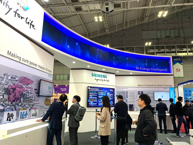 지멘스는 ‘에너지, 지능형이 되다(Be Energy Intelligent)’를 주제로 4차 산업혁명 시대를 주도할 전력 및 에너지 통합관리 분야의 혁신 기술 제품과 솔루션을 전시했다.