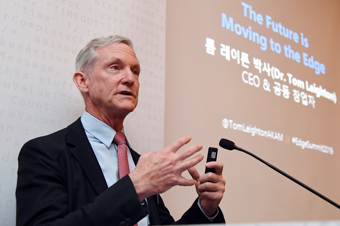 특히 이번 행사에는 톰 레이튼(Tom Leighton) 아카마이 CEO 겸 공동설립자가 방한해 ‘The Future is Moving to the Edge'라는 제목으로 엣지에 대한 요구가 커지고 있으며 큭히 5G가 확산되면 더욱 엣지사용은 확대될 것이라는 내용을 중심으로 발표했다.