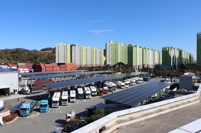 SK에너지는 지난 7월부터 부지 넓이가 5만㎡에 달하는 부산 신항 사업소의 화물차 주차면에 태양광 발전 설비를 구축해 왔다.