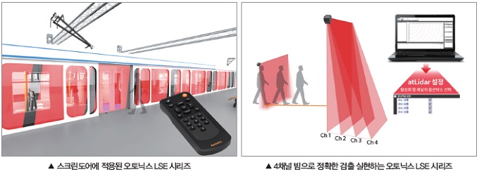 과거 지하철 스크린도어에 설치된 레이저 스캐너는 독일, 벨기에, 일본 제품이 주를 이뤘으나, 최근 국산화의 바람이 불면서 오토닉스가 국내 최초로 출시한 레이저 스캐너로 대체하는 지하철 역사가 많아진 것으로 밝혀졌다. 현재 오토닉스의 레이저 스캐너는 용산역, 영등포역 등을 포함하여 총 32개 역사에 약 3,000개가 설치되어 있다.