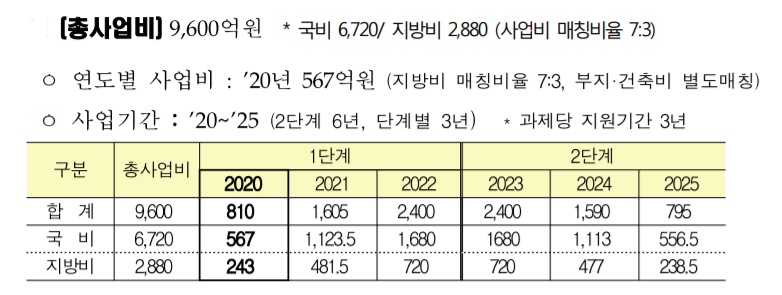 내년 1단계(‘20~’22) 사업을 거쳐 2단계(‘23~25)까지 총 6년간에 걸쳐 국비 6720억원을 지원하게 된다.