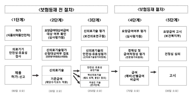 보건복지부는 이번 가이드라인에서 건강보험 등재 검토 대상이 되기 위하 조건으로 식품의약품안전처에서 의료기기로 인정받은 기기를 사용해야 함을 밝혔다.