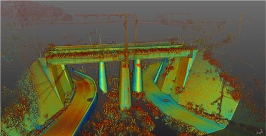 ▲3차원 스캔측량과 드론영상을 결합한 철도교량 3D 실측도