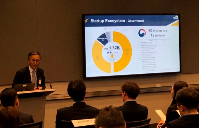 ▲김종갑 본투글로벌센터장이 미국 워싱턴DC에서 열린 월드뱅크그룹 한국혁신주간에 참가해 발표하고 있다.