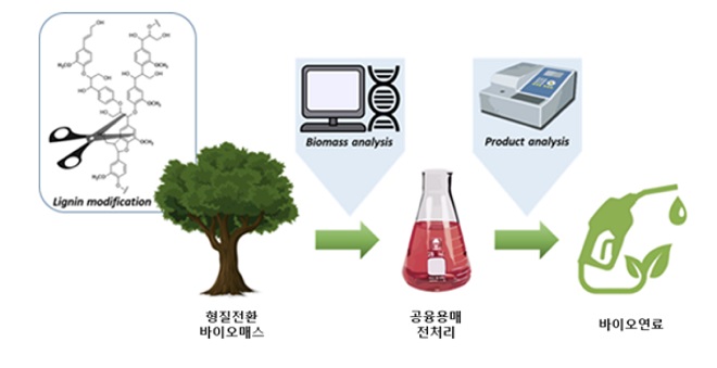 KIST 연구진은 美 바이오에너지연구센터와의 공동연구를 통해 리그닌을 좀 더 쉽게 제거할 수 있도록 유전자 형질 전환 기술을 이용하여 구조를 변형했다. 리그닌 구조 내에서 일부분의 길이를 짧게 변형하여 적은 양의 에너지 투입으로 리그닌을 제거할 수 있게 했다.