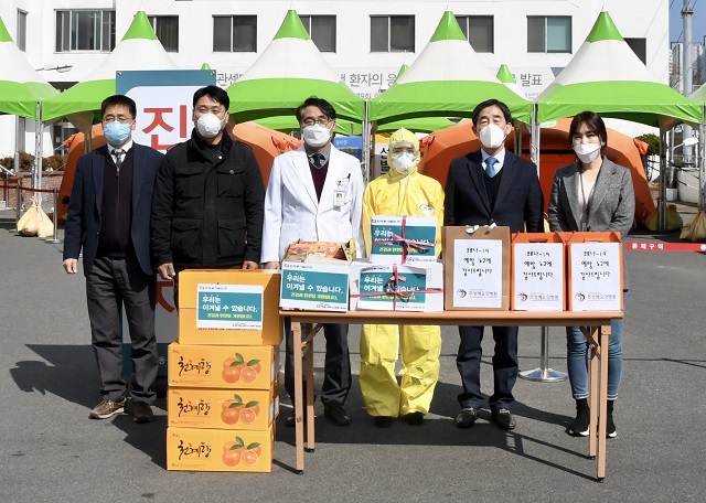 동서발전은 6일 울산시 내 선별진료소 13곳에서 근무하고 있는 의료진에게 태화종합시장을 비롯한 울산지역 전통시장 3곳*에서 910만원 상당의 과일, 떡 등을 구매해 전달했다.