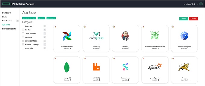 ▲HPE 컨테이너 플랫폼 스크린 샷