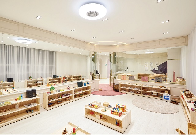 ▲ 마마몽떼 몬테소리에 설치된 천장형 공기청정기 퓨어루미의 모습(사진 : 신성이엔지)