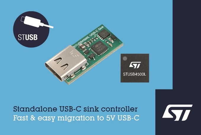 ST마이크로일렉트로닉스(STMicroelectronics, 이하 ST)가 자사의 USB-C 컨트롤러 IC 제품군에 포함되는 소형 풋프린트의 신제품으로, 5V 싱크 전용 애플리케이션에 활용될 수 있는 STUSB4500L을 출시했다. 이 제품은 USB-C 커넥터를 5V 범용 전원 플러그로 사용하는 데 필요한 필수 기능을 모두 통합하고 있으며, 설계자가 표준이나 코드 작성에 대한 부담 없이 USB-C 충전 솔루션을 쉽고 빠르게 구현하게 해준다.