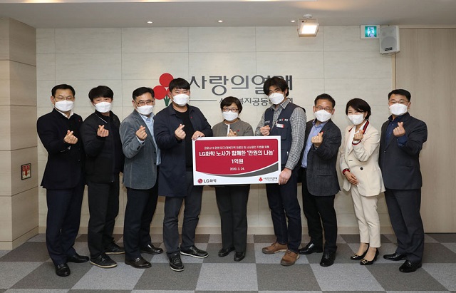LG화학은 24일 노사 대표자들이 함께 참석한 가운데 임직원들의 자발적 참여로 모은 1억 원의 성금을 사회복지공동모금회에 전달했다고 밝혔다.