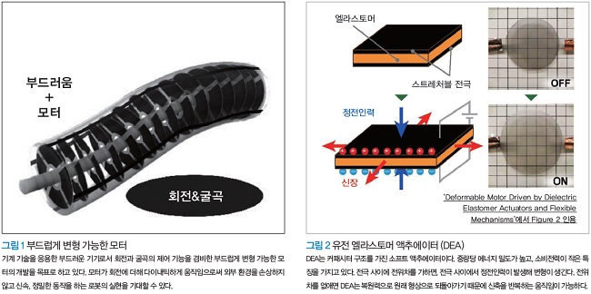 필자 등은 기계를 구성하는 가장 기본적인 부품의 하나인 모터에 주목했다. 그래서 그림 1에 나타낸 부드럽게 변형 가능한 모터를 실현할 수 있다면, 지금까지 없는 응용 전개를 기대할 수 있다고 생각했다.