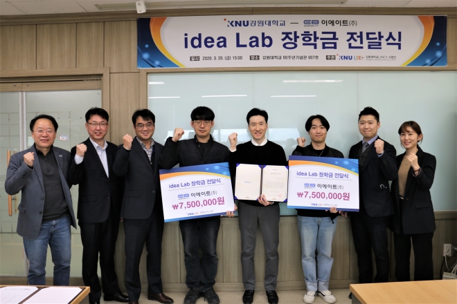 작년 6월 이에이트와 강원대학교는 산학 공동 연구 활성화와 전문인력 양성 및 교류 증진을 위한 상호 협력 업무 협약을 체결했으며, 장학증서와 함께 1인당 750만 원씩 2명에게 장학금 총 1500만 원을 전달했다.