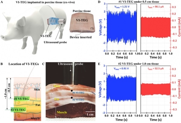 이번 연구에서는 실제 검진과 치료에 사용되는 초음파로 쥐와 돼지 피부층에 삽입된 마찰발전기에 진동을 일으켜 정전기를 발생시켜 발전과 배터리 충전을 가능케 하는 기술을 세계 최초로 개발했다. 기존 생체 삽입형 발전소자 대비 1000배 이상의 출력 전류를 발전시켰으며, 인체삽입형 의료기기를 구동할 수 있는 수준의 출력을 얻어 세계 최고 수준의 기술력을 입증했다.
