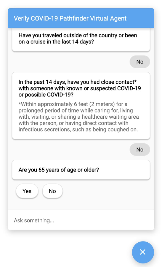 유사한 서비스를 이미 갖고 있는 기업은 오픈소스 템플릿을 통합하는 기능을 통해 코로나19 관련 내용을 기존의 가상 에이전트에 쉽게 추가할 수 있다. 일례로 구글 클라우드 파트너사이자 알파벳의 의료 기술 자회사 베릴리(Verily)는 의료 시스템과 병원을 위한 ’패스파인더 가상 에이전트 템플릿(Pathfinder virtual agent template)’을 출시해 채팅이나 보이스봇으로 코로나19 증상에 대한 고객의 질문에 답하고 세계보건기구(World Health Organization, WHO)와 미국 질병통제예방센터(Centers for Disease Control and Prevention, CDC) 등 공공 보건 당국의 최신 지침을 제공하고 있다.