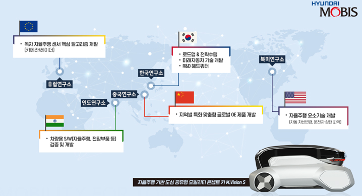 북미연구소는 자동 차선변경 로직, 운전자 상태 판단 로직과 같은 자율주행 요소기술 선행 개발을 담당하고 있다. 유럽연구소는 카메라와 레이더 센서와 같은 자율주행을 위한 핵심 알고리즘을 주력 개발하고 있다. 중국연구소는 글로벌OE 맞춤형 제품 개발 등 글로벌 경쟁력을 갖춘 지역별 특화 R&D 센터의 역할을 수행하고 있다. 국내 기술연구소는 R&D 헤드쿼터로서 회사의 기술개발 로드맵과 전략을 수립하고, 해외연구소와의 협업을 통해 미래 자동차 기술개발을 선도하고 있다.