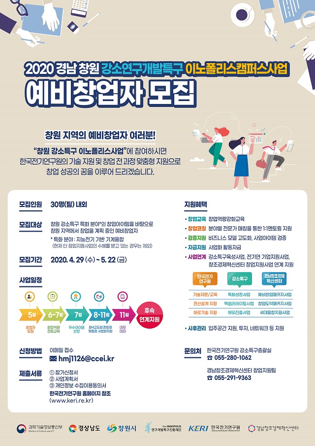 시행하는 ‘2020 경남 창원 강소연구개발특구 이노폴리스캠퍼스사업’ 참여자를 22일까지 모집한다고 밝혔다.