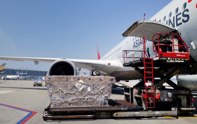 산업부는 지난 4월 29일 1차 특별 전세기를 긴급 편성해 중국 충칭, 인도네시아 자카르타에 반도체 부품, 공기청정기, 진단키트 등 약 36톤의 수출 화물을 운송했다.