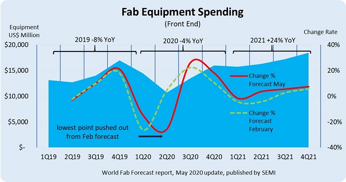 현재까지는 올해 하반기부터 투자 상승세가 전망되나 아직 코로나19로 인한 불확실성은 여전히 존재한다. 5월 현재 미국에서만 4천만명이 코로나19로 인한 불경기로 일시해고 상태에 있으며 기업들의 비즈니스 중단으로 인해 일반 전자 제품에 대한 일반 소비자의 지출은 감소할 것으로 예상된다. 하지만 클라우드 서비스, 서버 확대, 게임 소비 증가 등으로 메모리 및 IT 관련 장치의 수요는 촉진될 것으로 예상되어 팹 투자에도 긍정적인 영향을 미칠 것으로 보인다.