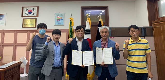 한국스마트제조산업협회와 서울공업고등학교는 11일 스마트공장 분야의 인재 육성을 위한 업무협약을 체결했다 (사진 가운데부터 이상진 센터장, 이재근 서울공고 교장).