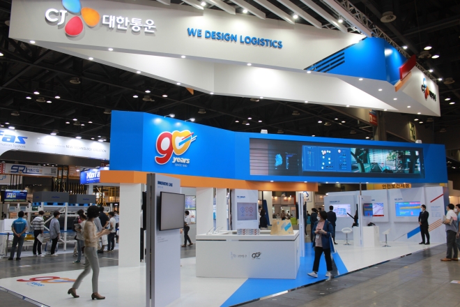 ▲전시회에 참가한 CJ대한통운의 부스 전경(사진 : 서재창 기자)