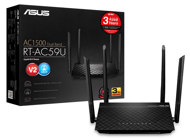 기존 RT-AC59U 모델의 업그레이드 버전으로 선보이는 ‘RT-AC59U V2’는 AiMesh 기능을 새롭게 지원하는 것이 특징이다.