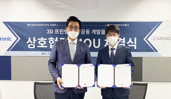 메디컬아이피가 지난 26일(수) 메드트로닉코리아와 3D프린팅 해부학 모델의 공동 개발을 위한 MOU를 체결했다고 밝혔다.