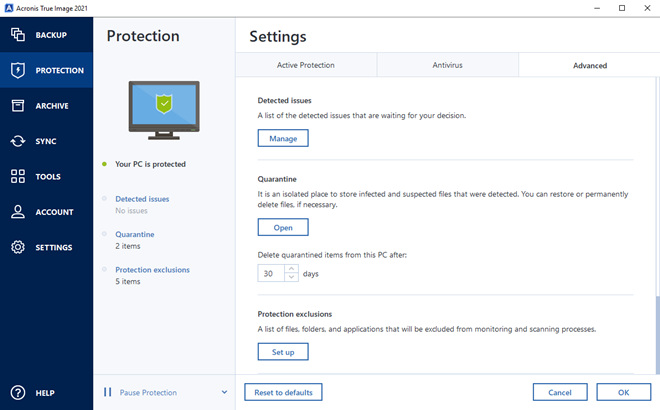 ▲ 아크로니스 트루 이미지 2021은 AI로 강화된 행동 휴리스틱스 기반의 실시간 보호 서비스가 제공된다. (사진 : 아크로니스)