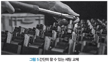 증설하거나 설비를 교환하거나 하므로 신규 설비 구입의 필요성이 적다. 머시닝센터에서 가공 중에 2대 이상의 트롤리를 채용해 머시닝센터의 가동을 멈추지 않고 가동 중 이외의 트롤리를 꺼내서 세팅 교환을 할 수 있다. 트롤리는 대차와 같이 되어 있으며, 재료 보관소 등 모든 장소에 접근이 가능한 동시에, 트롤리 상에서 세팅 전환도 가능하다(그림 10).