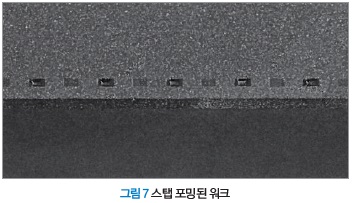 ‘스탬핑 테크놀로지’는 랑사의 특허가 되는 폼 클로저 기술이다(그림 6, 7). ‘마찰저항 없이 점 접촉에 의해 물체를 파지한다’라는 역학적 구조를 의미한다. 랑사의 시스템에서는 과도한 클램프력은 가공 시 워크에 악영향을 주게 되기 때문에 필요한 스탬핑 기능을 분리, 전용의 스탬핑 유닛으로 하는 방식을 채용하고 있다. 클램핑은 낮은 클램프로도 모든 방향의 절삭저항에 대해 강하게, 또한 확실하게 안전한 파지를 실현한 획기적인 클램핑 기술이다.