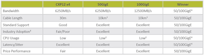 표1. 50GigE & 100GigE와 다른 인터페이스의 차이점